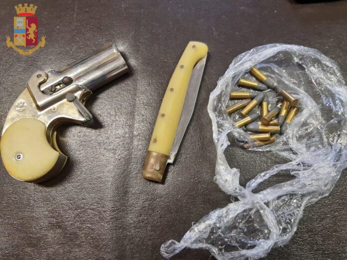 All’arrivo della pattuglia della Stradale e di un’altra volante del commissariato Romanina, uno degli uomini, un 50enne originario di Catania, ha gettato a terra un coltello tipo “pattada” con una lama di 9,5 centimetri. Con le dovute accortezze gli agenti hanno proceduto a controllare tutte le persone e a perquisire le loro vetture, scoprendo all’interno di una di esse, dietro il sedile posteriore, una pistola marca Derringer calibro 6 millimetri con annesse 16 cartucce calibro 22.