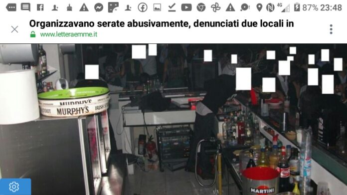 Le indagini effettuate hanno permesso di accertare l’organizzazione imprenditoriale di serate organizzate (con pagamento di biglietto di ingresso da 20 a 30 euro a persona), spesso con la presenza di minori e con capienza che in alcuni casi hanno sfiorato le seicento persone. Prontamente sono stati predisposti specifici controlli notturni effettuati dalla squadra annona con l’interruzione della serata danzante in un caso e con la sospensione dell’accesso ai locali da ballo in un altro caso. In entrambi i casi i responsabili delle attività sono stati denunciati all’A.G. per la violazione penale di cui all’articolo 80 del Testo Unico delle Leggi di Pubblica Sicurezza e per la violazione dell’articolo 681 del codice penale in quanto i locali sono risultati sprovvisti della prescritta agibilità nonché della obbligatoria certificazione di prevenzione incendi.