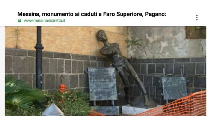 «Da qualche mese, il Monumento ai caduti delle due Guerre mondiali – sito in piazza San Rocco a Faro Superiore – si presenta in una condizione di evidente precarietà». Lo dichiara in una nota il Presidente della VI^ Circoscrizione, Francesco Pagano (Ora Sicilia).