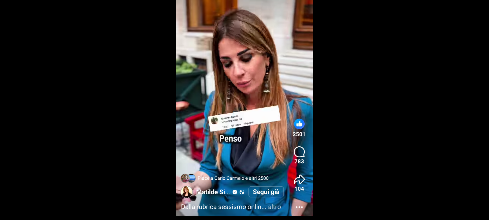 “Dalla rubrica sessismo online: Ecco a voi un assaggio dello schifo che ricevo sui social”. A dirlo ieri, sulla sua omonima Pagina Facebook ‘Matilde Siracusano’ è stata la sottosegretaria di Stato del Governo guidato dalla premier Giorgia Meloni nonché deputata messinese di Forza Italia, presso Montecitorio a Roma.