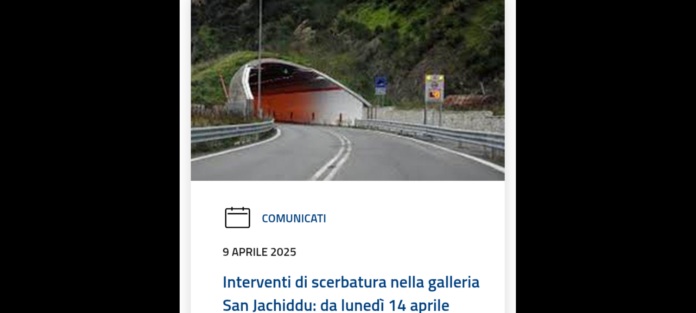Provvedendo ad interdire le bretelle di collegamento alla stessa citata galleria sia lato viale Giostra che lato viale Annunziata, verranno collocate idonee barriere e sarà posta altra segnaletica di preavviso di chiusura del Tunnel San Jachiddu lungo i viali Giostra e Annunziata. Il divieto…, è stato disposto per consentire l’attività di scerbatura nel menzionato luogo.