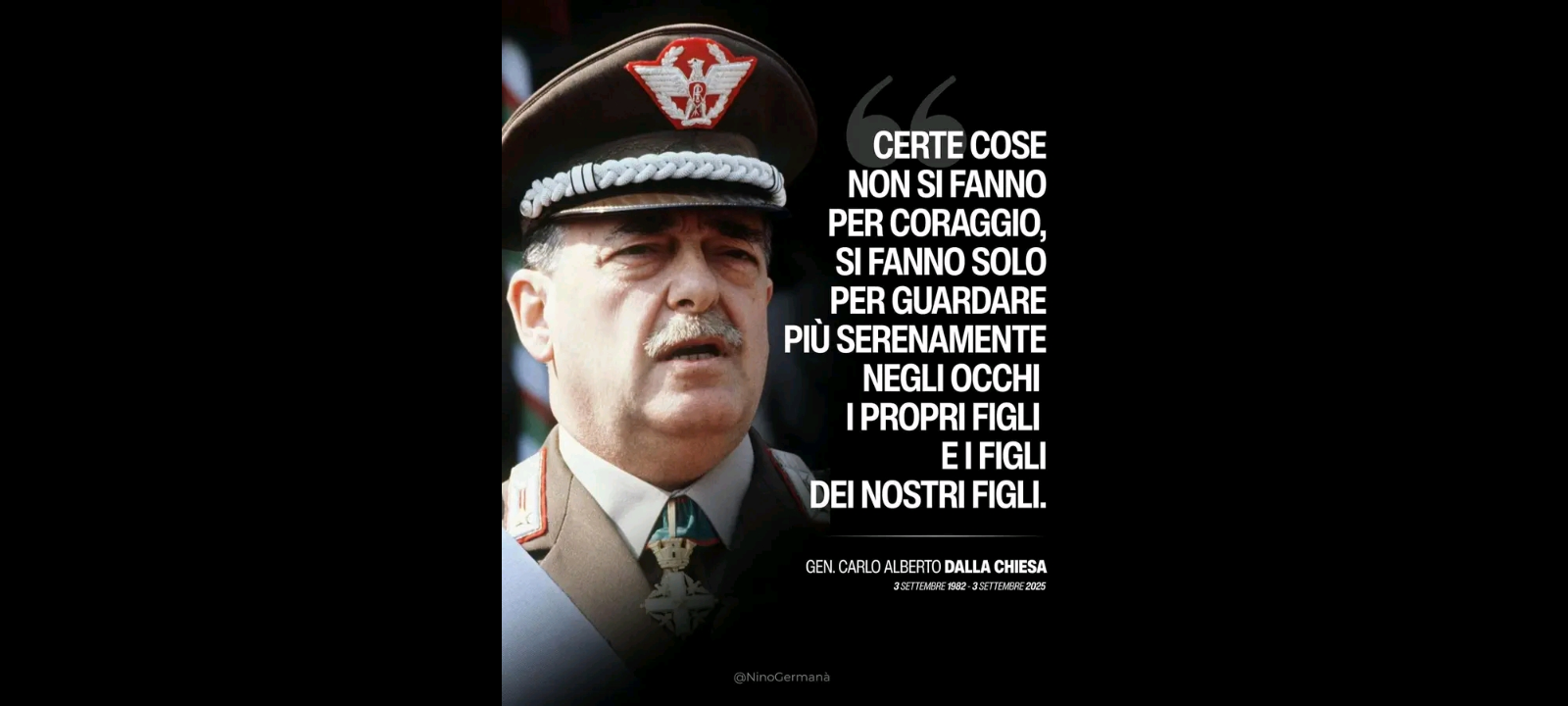 - “Nel quarantatreesimo anniversario della strage va ricordata l’opera del Generale, a partire dalle sue intuizioni, dai suoi modelli investigativi e operativi che, fino ai nostri giorni, consentono alla magistratura ed alle forze dell’ordine di raggiungere obiettivi e risultati straordinari contro la criminalità organizzata”;