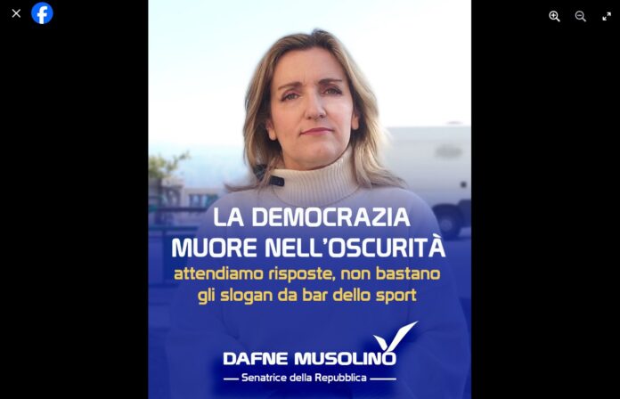 «’Democracy dies in darkness’ (La democrazia muore nell’oscurità) questo è il motto che compare in alto nella prima pagina del Washington Post, per ricordare che il primo dovere della democrazia e di chi la difende è fare luce su ogni aspetto della vita pubblica: Ed è quello che ha fatto, ancora una volta, Palmira Mancuso nella sua nota stampa, con la quale ha dichiarato che l’assessore ai servizi sociali sarebbe stata chiamata a difendere con il numero degli iscritti il suo ruolo all’interno del partito “arruolando” un certo numero di assistenti sociali appena assunte». A sottolinearlo in un Post pubblicato oggi 18 febbraio 2024, sulle sue omonime Pagine Facebook, è stata la senatrice messinese Dafne Musolino membro del Gruppo parlamentare di ‘Italia Viva’ presso ‘Palazzo Madama’ a Roma.