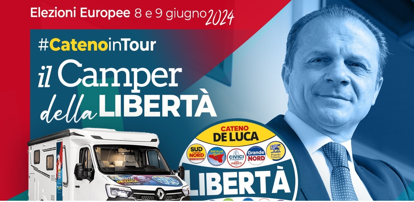 Domani 30 maggio 2024, riparte il Tour elettorale di Cateno De Luca (sindaco di Taormina e leader del ‘Movimento Sud chiama Nord’), volto a promozionare la ‘Lista’ ‘Libertà’ presente alle Elezioni Europee dell’8 e del 9 giugno prossimi. Ieri vi è stata una doverosa pausa, dedicata da De Luca alla assistenza alla propria madre sottoposta ad una Operazione alla colecisti svoltasi presso il Policlinico Universitario di viale Gazzi a Messina.
