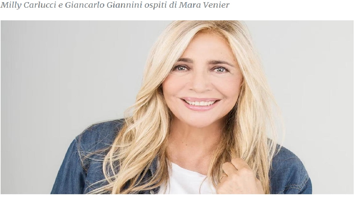- Milly Carlucci, che interverrà insieme ai cinque ‘investigatori’ Christian De Sica, Iva Zanicchi, Flavio Insinna, Francesco Facchinetti e Serena Bortone per presentare la nuova edizione de ‘Il Cantante Mascherato’, in onda su Rai1 da sabato 18 marzo;