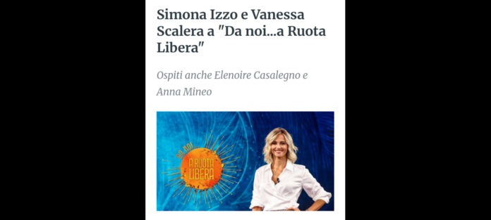 - Simona Izzo, attrice, doppiatrice, sceneggiatrice e regista, che torna protagonista su Rai1, da sabato 21 marzo, tra i “magnifici sette”, insieme alla stessa Francesca Fialdini, nella nuova edizione di “Canzonissima”, lo storico varietà riportato in tv da Milly Carlucci;