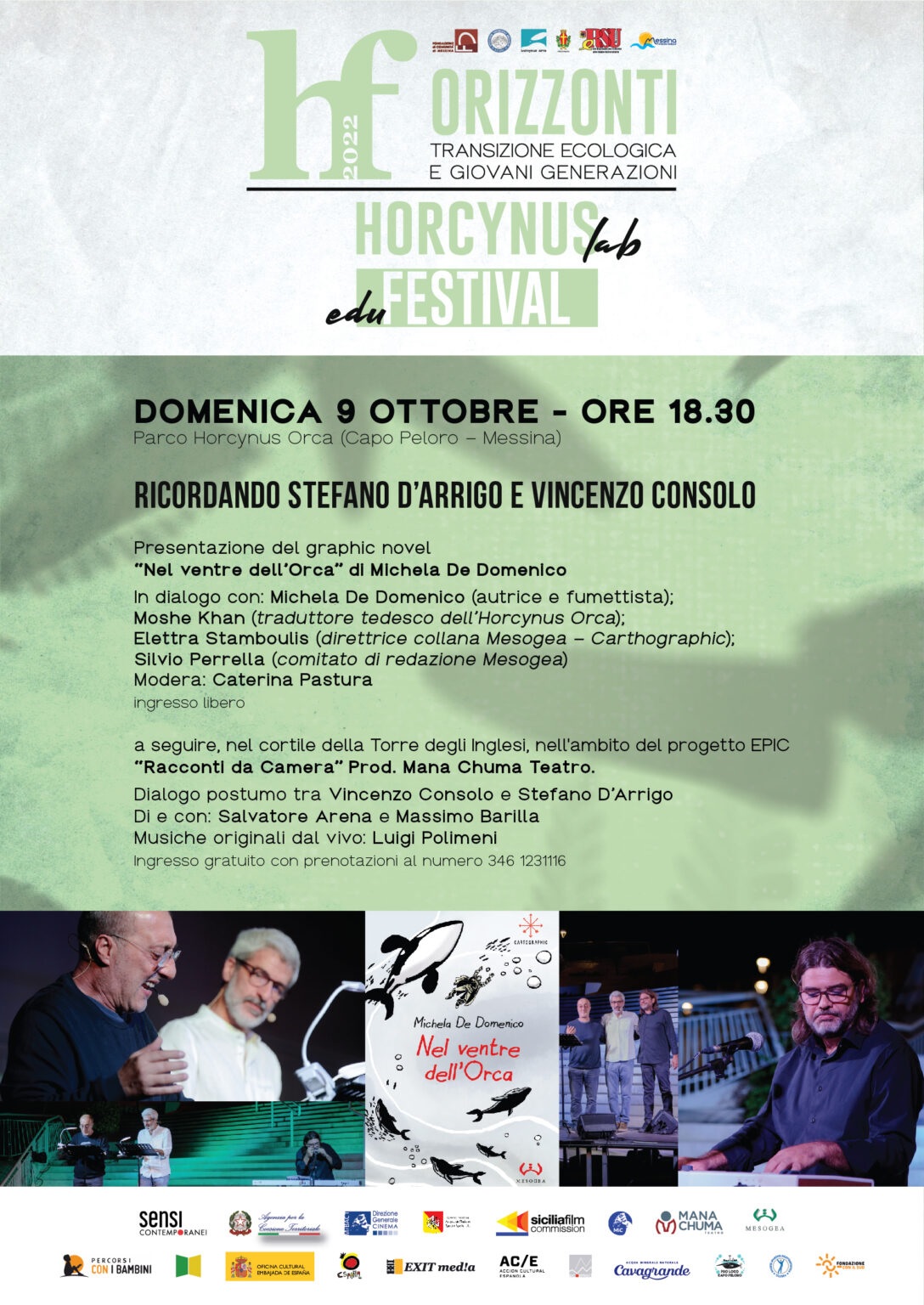 Gli eventi di domenica 9 ottobre avranno come filo conduttore il Mediterraneo e l’area dello Stretto di Messina, due elementi da sempre al centro dei percorsi e delle sperimentazioni promossi dalla Fondazione Horcynus Orca e dall’Horcynus Festival. E a trent’anni dalla scomparsa di Stefano D’Arrigo e a dieci da quella di Vincenzo Consolo, la serata sarà dedicata a questi due autori messinesi che hanno saputo raccontare in modo straordinario la dimensione mediterranea e la sua realtà composita.