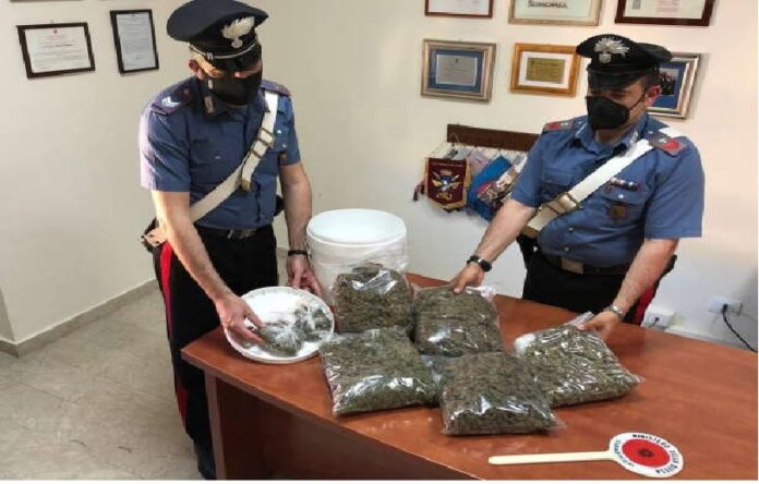 Richieste le chiavi del veicolo, quindi, i Carabinieri hanno effettuato una perquisizione domiciliare e veicolare e proprio all’interno del veicolo sospetto, utilizzato dall’uomo per la propria attività di artigiano nella lavorazione del cartongesso, i Carabinieri hanno rinvenuto sette “bustoni” in cellophane, alcuni dei quali nascosti all’interno di bidoni di vernice, contenenti complessivamente oltre 2,7 chili di sostanza vegetale, poi rivelatasi essere marijuana.