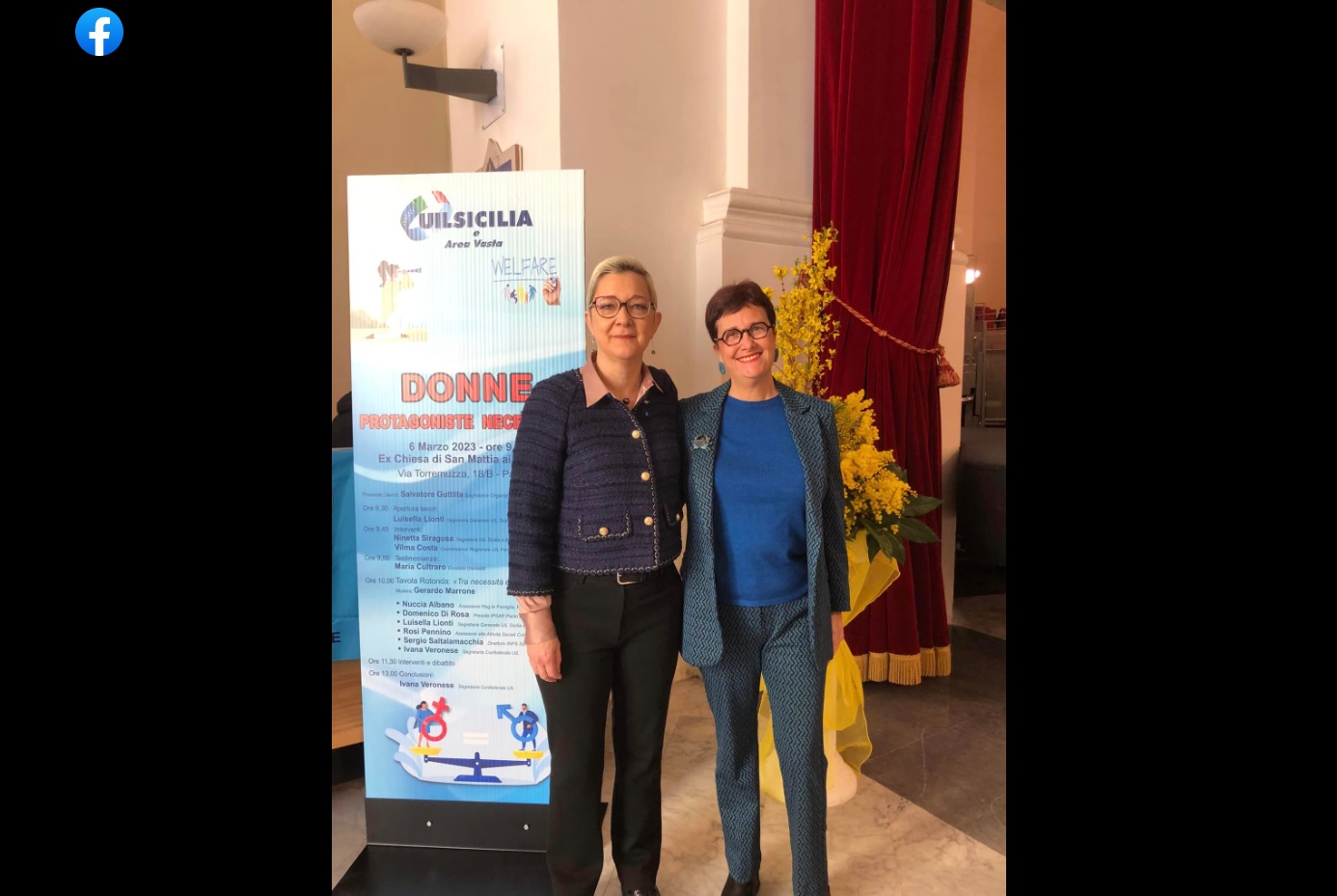 - ore 9.45 – Interventi… Ninetta Siragusa (Segretaria UIL Sicilia e Area Vasta); Vilma Costa (Coordinatrice Regionale UIL Pari Opportunità e Politiche di Genere); ore 9.55 Testimonianza – Maria Cultraro (Esodata Unicredit);