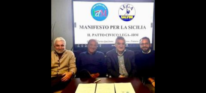 Dopo il vertice romano che ha definito il patto federativo per la Sicilia, tra Lega e Italia del Meridione, ieri a Giardini Naxos, è stato sottoscritto il primo Patto civico territoriale tra le due forze politiche, alla presenza del senatore Nino Germanà, segretario regionale della Lega in Sicilia, Vincenzo Castellano, segretario federale Italia del Meridione, e ai rispettivi commissari di Giardini-Naxos Nino Bonaventura (Lega) e Sebastiano Caudullo (IdM).