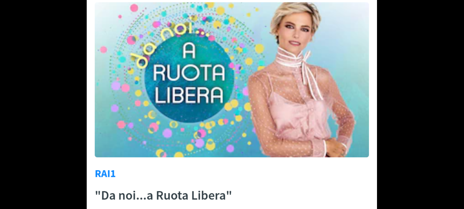“Da noi… a Ruota Libera”…, è un programma realizzato dalla direzione Intrattenimento Day Time in collaborazione con Endemol Shine Italy.