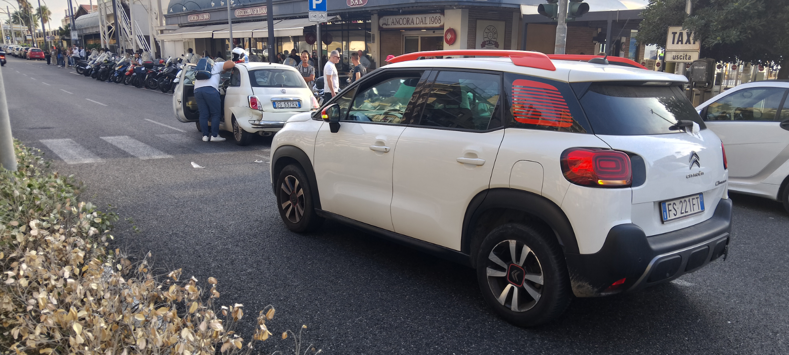 Durante il prefato episodio, la conducente di una ‘Citroen Aircross’ ha investito con la guidatrice di una ‘FIAT Cinquecento’ che la precedeva e probabilmente aveva rallentato per fare transitare un pedone.