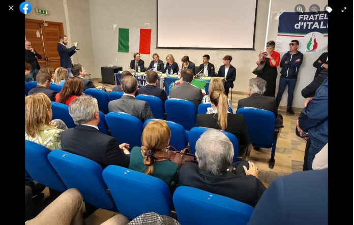Dopo le 11.30 di oggi 19 maggio 2023…, alla presenza di Maurizio Leo (viceministro dell’Economia e delle Finanze), Gaetano Galvagno (presidente dell’Assemblea Regionale Siciliana), Salvo Pogliese (coordinatore regionale FdI per la Sicilia orientale), Gianpiero Cannella (coordinatore regionale FdI per la Sicilia occidentale), Pasquale Currò (coordinatore metropolitano), ‘Elvira Amata (assessore regionale al Turismo) ed Ella Bucalo (senatrice)’… [commissari provinciali FdI] e altri rappresentanti istituzionali del partito per la provincia di Messina si è tenuto un incontro presso il Palacultura di viale Boccetta.