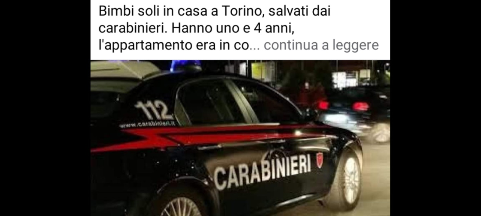 Due bambini, di uno e quattro anni, sono stati soccorsi questa mattina dai carabinieri del nucleo radiomobile di Torino, intervenuti in via Valentino Carrera, nel quartiere Parella, dove i piccoli erano stati lasciati soli in casa