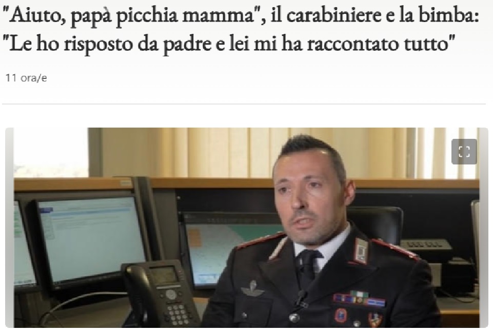 IL CARABINIERE INTUISCE CHE DALL’ALTRA PARTE C’È UNA BAMBINA E LE CHIEDE COME STA... "STO BENE MA C’È MIO PADRE CHE HA DATO UNA BOTTA IN TESTA A MAMMA"... ECCO COME È ANDATA LA RICHIESTA DI AIUTO DELLA BAMBINA DI SETTE ANNI CHE, VENERDI SCORSO, A FALCONARA, HA CHIAMATO IL NUMERO UNICO DI EMERGENZA CON IL CELLULARE DELLA MADRE, FACENDO ARRIVARE IN POCO TEMPO UNA PATTUGLIA DEI MILITARI DEL NORM IN CASA