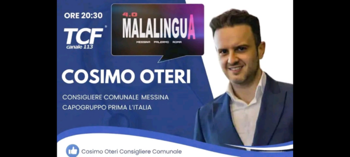 “É venerdì, torna Malalingua, il talk dei messinesi: Dai danni del Ciclone Harry al ciclone della politica, alla vigilia delle ormai certe dimissioni del sindaco Federico Basile… se ne parlerà questa sera a Malalingua”. Lo scrive oggi, sulla sua omonima Pagina Facebook ‘Cosimo Oteri’ il capogruppo in Consiglio comunale a Messina di ‘Prima l’Italia – Lega’ per annunciare la sua partecipazione dopo le 20.30 al programma condotto da Barbara Turati sul Canale 113 del Digitale terrestre di TCF.