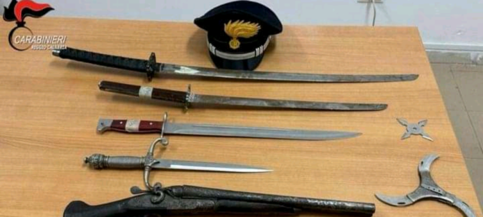 I militari, insospettiti dall’atteggiamento dell’uomo durante normali controlli, hanno perquisito la sua abitazione dove sono state rinvenute diverse armi da taglio, per lo più di origine giapponese, che mai si sarebbero aspettati di ritrovare. Occultati nell’armadio c’erano infatti katane dalla lama affilata, stelle ninja da lancio e, addirittura, un fucile a canne mozze modificato artigianalmente per agevolarne l’occultamento.