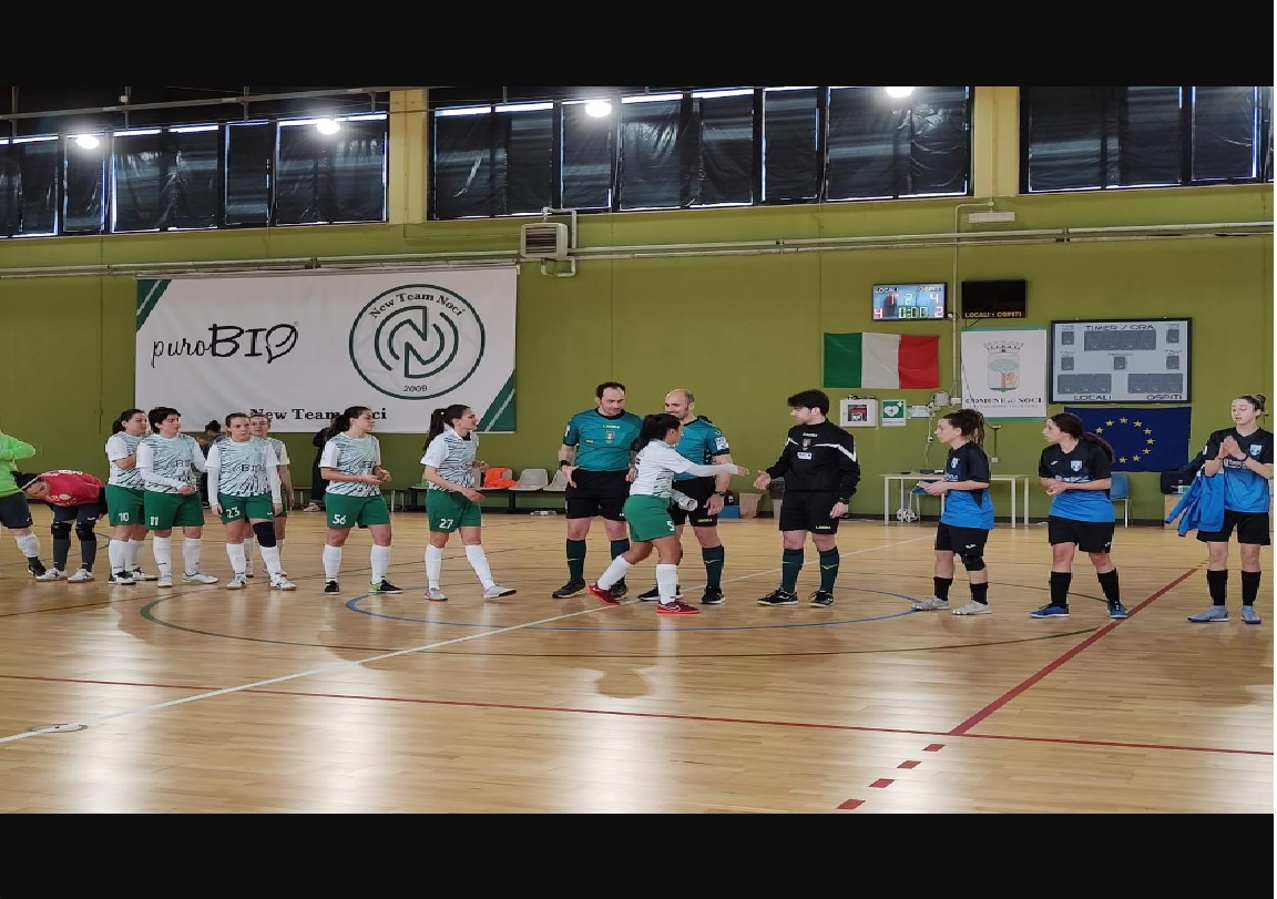 SECONDO TEMPO: Noci più vivo che ci prova subito mettendo le armi pesanti, schierando il Power Play con il portiere di movimento e subito crea un’occasione con Biundo che di prima intenzione non trova la porta. Ancora contropiede Noci ed ancora Biundo, servita da Gigante che non inquadra la porta. Alla terza occasione però la New Team Noci sfonda il muro scalettoto, sempre Gigante per Biundo che stavolta supera Arrigo in uscita e riapre il match. Entusiasmi di casa spenti subito da un’abilissima Musumeci, conquista la punizione che Pensabene batte immediatamente per la laterale biancoblù che coglie tutte le avversarie di sorpresa e ristabilisce le distanza con la doppietta personale ed il goal numero 10 in campionato per lei. Episodio che potrebbe cambiare il match a metà ripresa, Marchetta viene punita con il secondo giallo e Team Scaletta costretto all’inferiorità numerica. Superlativa Pensabene nell’evitare il goal a Loiacono pronta ad insaccare a porta sguarnita. Noci che ci prova soprattutto da fuori con Mastronardi il cui mancino però è sempre controllato abilmente in angolo da Arrigo. Ultima doppia occasione per Quarta che ci prova anche di punta con un destro potentissimo che non inquadra la porta.