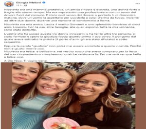 Giorgia Meloni, il post su Facebook per l’amica Nicoletta