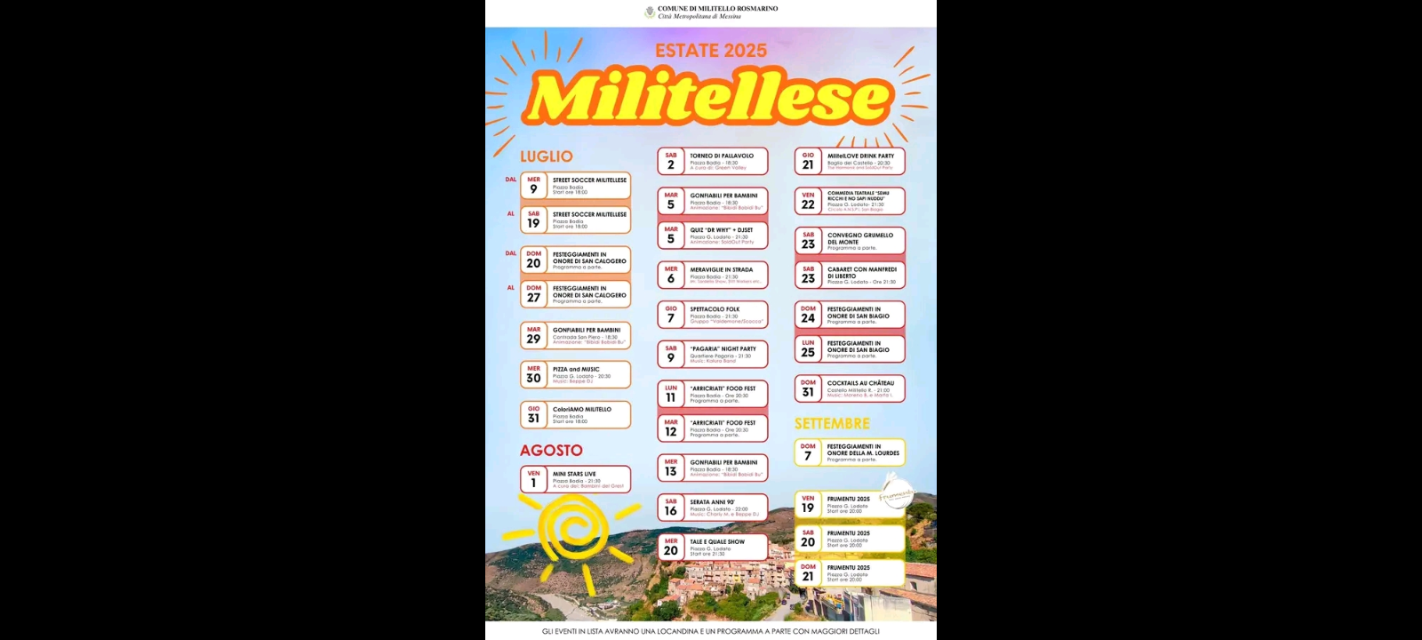 “#Estate2025 #EventiEstivi #Musica #StreetFood #Arte #Spettacoli #EstateInPaese #militellorosmarino #unaltramilitello #estatemilitellese”!