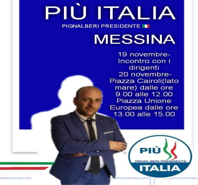 Domani…, 20 novembre, la visita di Pignalberi si concludera’ prima nella citta’ peloritàna, dalle 09.00 alle 12.00 a piazza Cairoli e dalle 13.00 alle 15.00 a piazza Unione Europea… allorquando illustrera’ ai presenti il Programma del suo sodalizio politico. Successivamente…, alle 17.00 il leader del frusinate si trasferira’ a Catania dove al Centro fieristico ‘Le Ciminiere’ seguira’ la Convention sui 4 anni del governo siciliano guidato dal presidente Nello Musumeci.