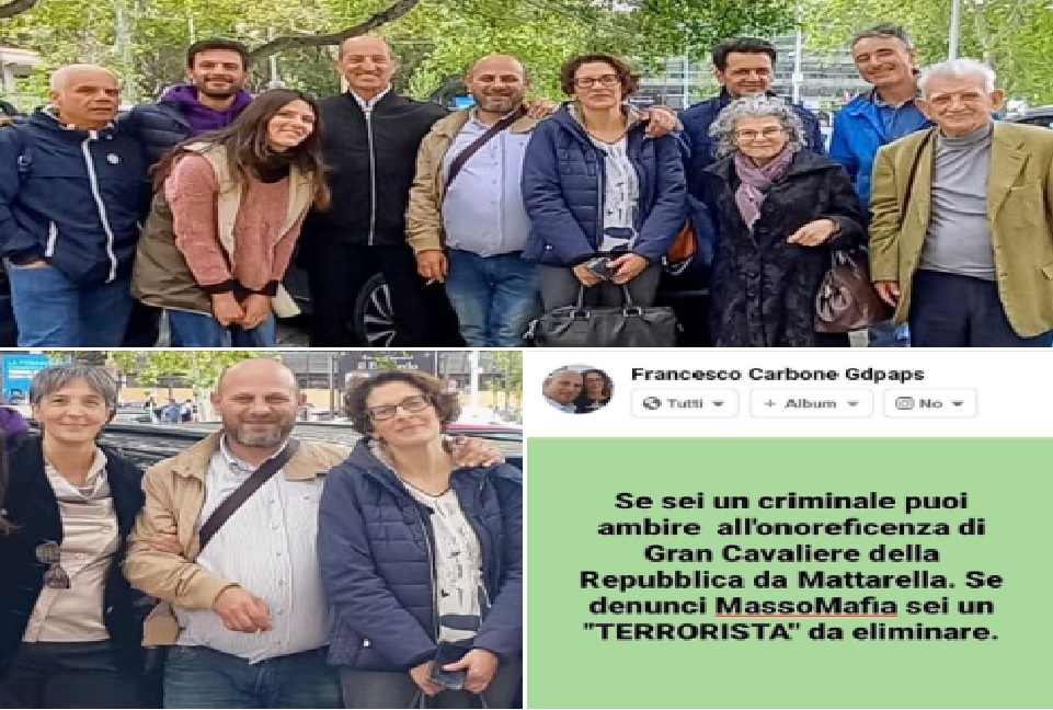 - “mi chiedo e mi domando del perché il popolo italiano anziché seguire i finti programmi d’inchiesta ,non vengono a verificare di persona all’interno dei tribunali , del perché nonostante i cittadini denunciano , ad essere protetti sono i denunciati e non chi denunce come fa Francesco Carbone! Smuovetevi che, nessuno, all’interno delle Istituzioni o dei Poteri, verrà a salvarci se non noi stessi… sappiatelo”!