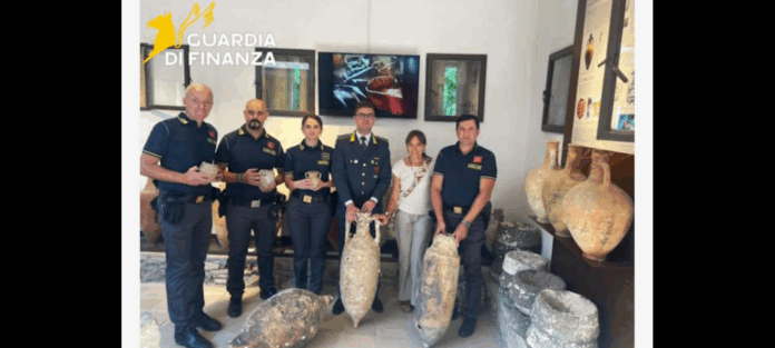 Finanzieri del Comando Provinciale di Messina hanno dato in consegna tre anfore grandi e tre anfore piccole, risultate essere di rilevante interesse archeologico, al “Parco Archeologico di Naxos Taormina”, ove potranno essere esposte e valorizzate presso il locale Museo Archeologico.