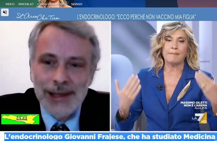 “Non ho intenzione di vaccinare mia figlia anche se c’è un prezzo da pagare in termini di libertà molto alto”. Lo ha dichiarato ieri, 15 dicembre 2021, nel corso della trasmissione ‘L’Aria Che Tira’ (in onda su La7 tutti i giorni alle 11.00 con la conduzione di Myrta Merlino), l’endocrinologo Giovanni Frajese, che ha studiato Medicina con Pierpaolo Sileri il vice ministro alla Salute del #M5S, partecipante al Governo guidato da Mario Draghi.