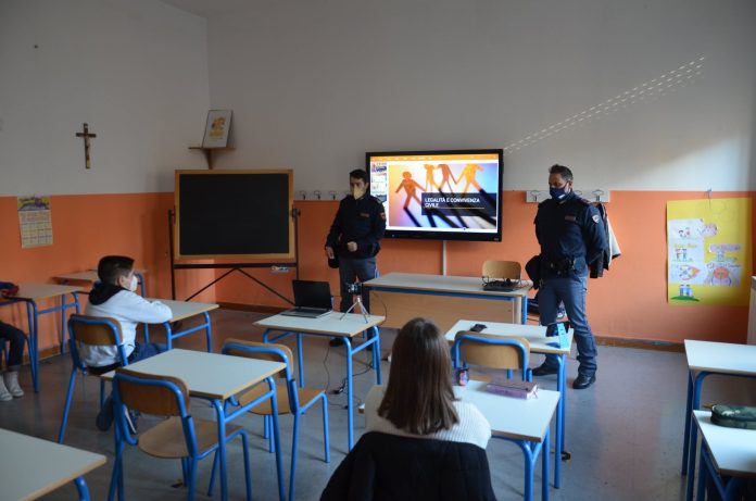 Gli agenti della Polizia di Stato, ieri hanno incontrato gli alunni dell’Istituto Comprensivo “S. QUASIMODO” della Scuola Primaria di primo grado – plesso “Don Bosco”