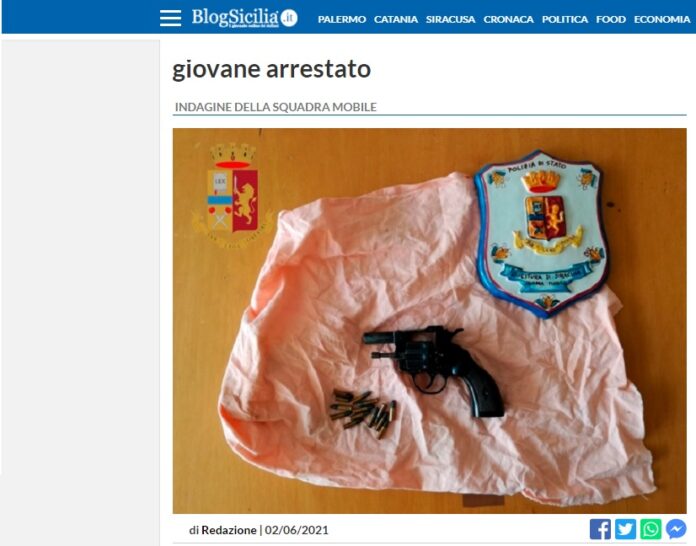 Gli agenti della Squadra mobile di Siracusa hanno arrestato Samuele Mancarella, 24 anni, disoccupato, con precedenti per droga, accusato di detenzione di arma clandestina e munizionamento. Nel corso di una perquisizione, scattata nella sua abitazione, nel rione della Mazzarrona, alla periferia nord di Siracusa, la polizia ha scovato in un un ripostiglio una pistola calibro revolver calibro 22 ad 8 colpi e 14 cartucce, nascoste in una zainetto, coperto da un canovaccio rosa.