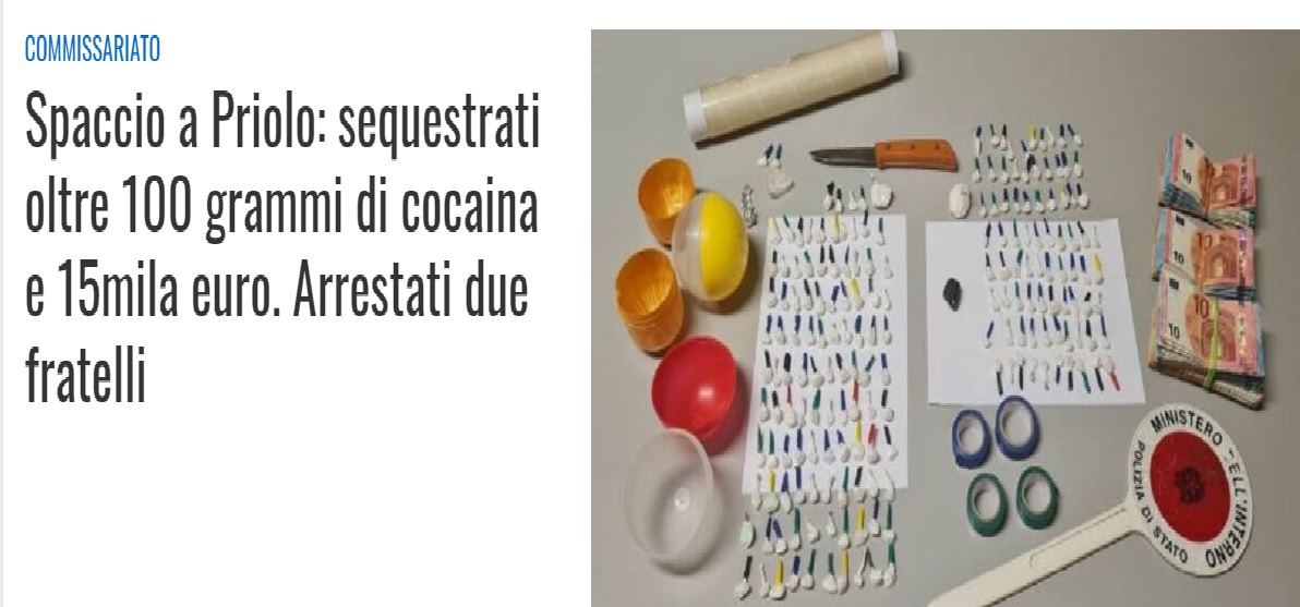 Colpo alla rete dello spaccio che opera a Priolo Gargallo. Gli uomini del Commissariato hanno arrestato due fratelli, di 25 e di 23 anni, entrambi residenti a Priolo e già conosciuti alle forze di Polizia. I due sono stati notati dagli agenti, nel pomeriggio di ieri, nei pressi di Via Reno, che, con fare sospetto e mal celando un certo nervosismo, uscivano dall’abitazione del padre e si allontanavano a bordo di un ciclomotore.