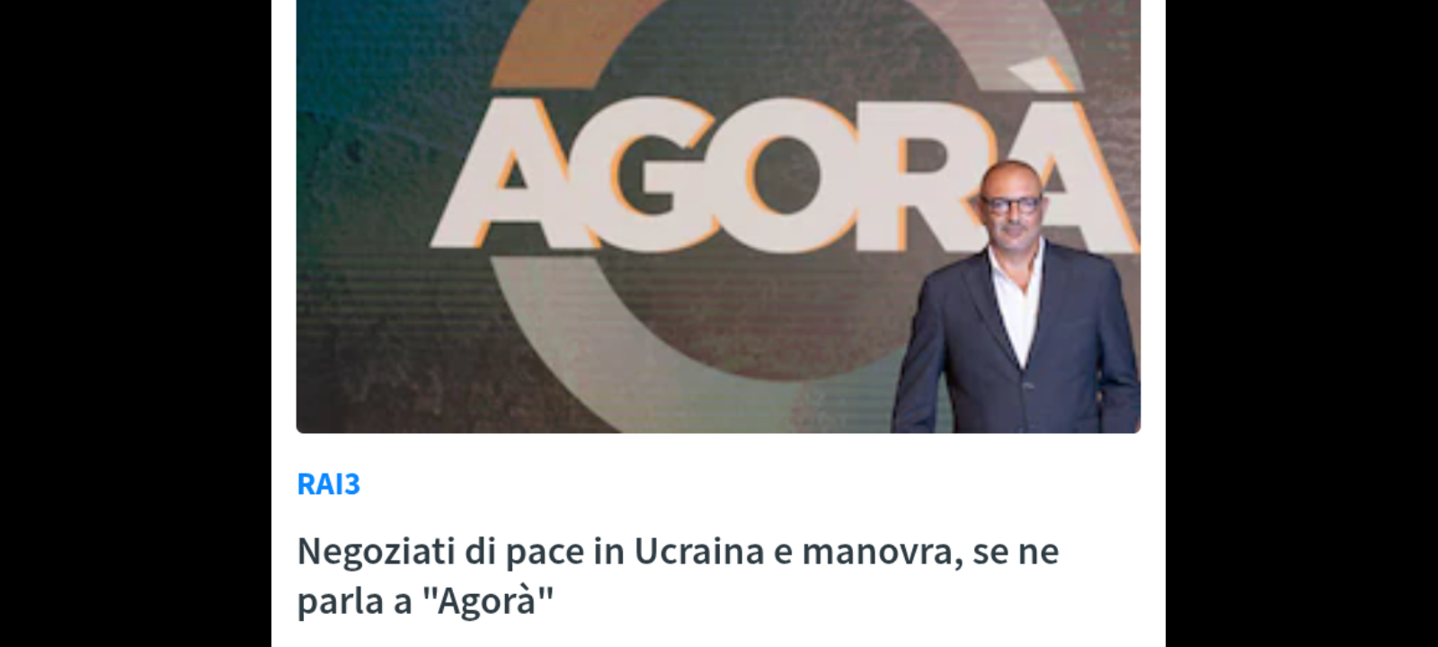 ‘Guerra in Ucraina: sul fronte diplomatico non si fermano i contatti internazionali per esplorare possibili scenari di pace, nel frattempo, i leader europei ribadiscono il loro sostegno a Kyiv; a seguire, una riflessione sui pericoli legati a terrorismo e antisemitismo; e poi, spazio alla politica interna, con la manovra di bilancio 2026 e un focus sul tema del possibile innalzamento del tetto al contante fino a 10.000 euro’. Questi alcuni dei temi della puntata di mercoledì 17 dicembre di Agorà, condotto da Roberto Inciocchi, in onda alle 8.00 su Rai3.
