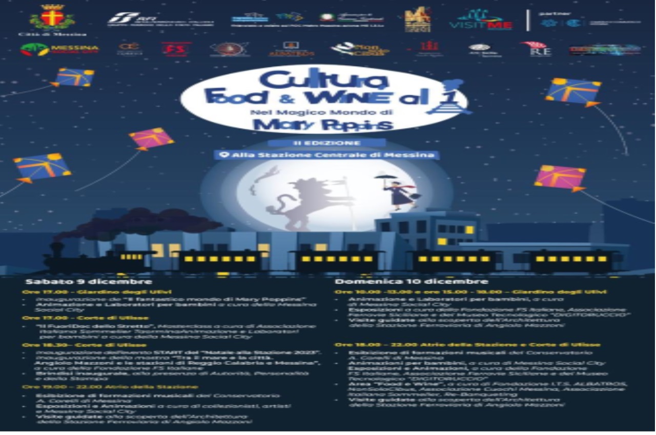 Ha preso il via oggi pomeriggio alle ore 17, con l’inaugurazione alla presenza del sindaco di Messina Federico Basile per protrarsi successivamente alle 18.30, e si concluderà domani, domenica 10, la II Edizione di “Cultura, Food e Wine al Binario 1 con il Magico Mondo di Mary Poppins”