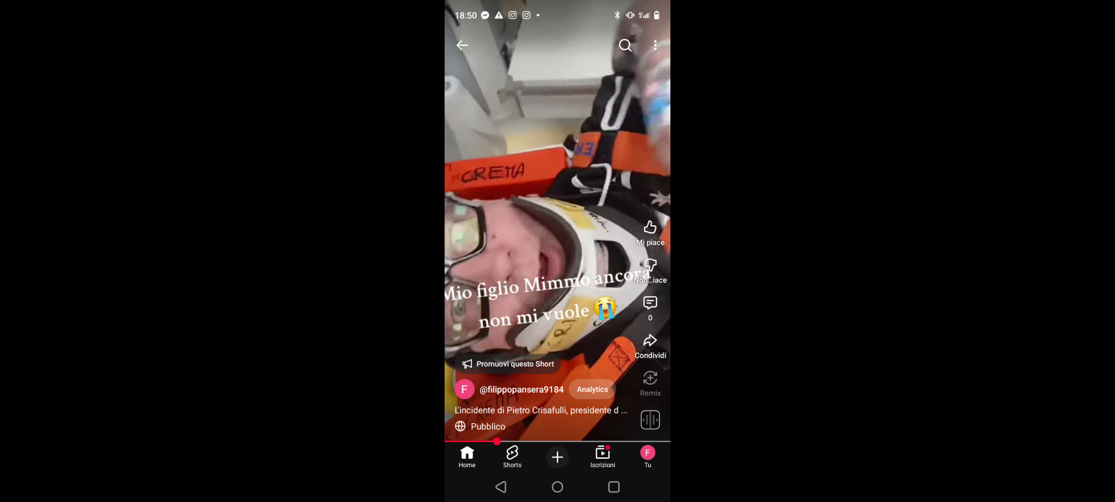 “Ho avuto un brutto incidente, ed ho perso conoscenza: Mi risveglio dopo qualche ora… ho forti dolori ovunque, soprattutto al ginocchio, non sento bene, vedo opaco… credo che mio figlio Mimmo, ancora non mi vuole accanto a lui”. Lo ha scritto ieri, sul suo omonimo Profilo Facebook ‘Pietro Crisafulli’ il presidente della Associazione ‘Sicilia Risvegli Onlus’ di Catania.