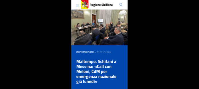 «Ho avuto una call con il presidente del Consiglio Meloni, il ministro della Protezione civile Musumeci e i presidenti delle Regione Calabria e Sardegna, Occhiuto e Todde, per fare il punto della situazione… un confronto positivo, c’è in atto una velocizzazione della procedura, invieremo già stasera (venerdì – Nota di Redazione – per chi legge) la richiesta di stato di emergenza deliberata ieri dalla giunta: È un’iniezione di ulteriore fiducia rispetto ai tempi, così come da volontà della premier espressa personalmente davanti a noi… la presidente Meloni ci ha comunicato che già lunedì il Consiglio dei Ministri si riunirà per dichiarare lo stato di emergenza e stanziare le prime risorse per far fronte agli interventi urgenti e garantire i primi ristori». Lo ha detto in una nota di ieri, il presidente della Regione Siciliana Renato Schifani, in Prefettura a Messina.