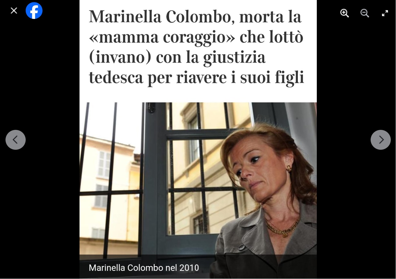 “Ho conosciuto Marinella Colombo dopo la sua lunga battaglia per ottenere la custodia dei figli che le erano stati sottratti in una dolorosa vicenda giudiziaria tra l’Italia e la Germania: Marinella, dopo la separazione con il marito tedesco, si era scontrata con la legislazione tedesca che privilegia i genitori tedeschi rispetto a quelli stranieri”. A scriverlo ieri sulla sua omonima Pagina Facebook, è stata l’avvocato modenese Stefania Ascari deputata del ‘Movimento 5 Stelle’ presso Montecitorio a Roma.
