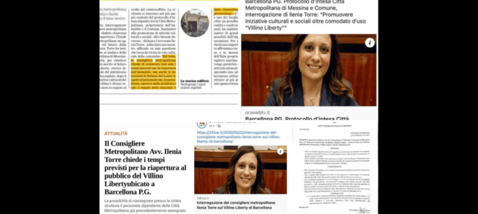 Segue l’interrogazione del Consigliere Metropolitano della Città Metropolitana di Messina… avvocato Ilenia Torre al primo cittadino peloritano… sui tempi previsti per la riapertura al pubblico del Villino Liberty ubicato a Barcellona Pozzo di Gotto…
