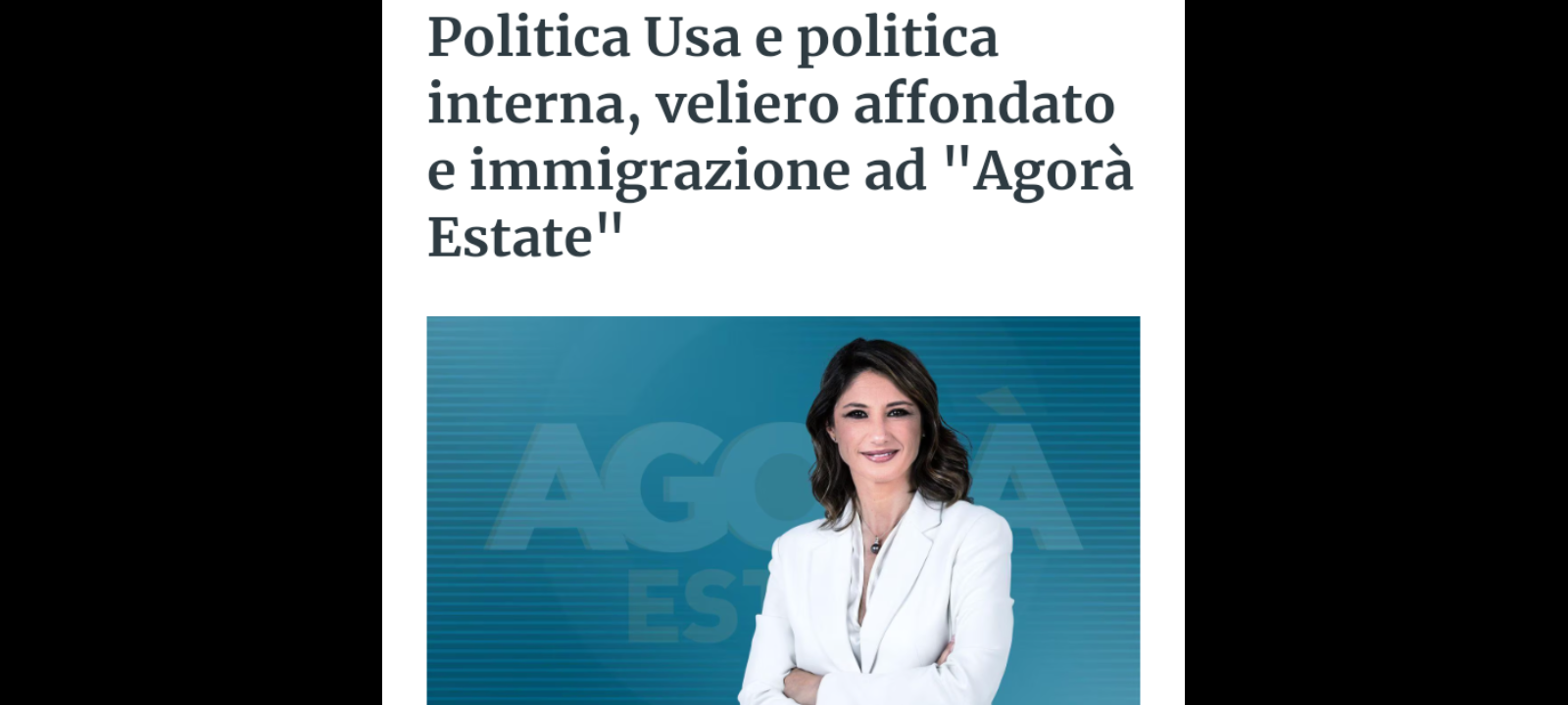 ‘I candidati dem, Kamala Harris e Tim Walz, si preparano alla maratona elettorale in vista delle presidenziali americane del prossimo novembre; spazio alla politica interna italiana con il Meeting di Rimini, il dibattito su immigrazione e ius scholae e la ripresa delle attività parlamentari e di Governo; le ultime notizie sul veliero Bayesian, affondato al largo delle coste siciliane, e sull’inchiesta che dovrà accertarne le cause’. Questi i temi di “Agorà Estate”…, che è iniziato in onda venerdì 23 agosto alle 8.00 su Rai 3.