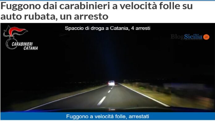Nella nottata, intorno alle 2, l’equipaggio della gazzella della Radiomobile stava percorrendo la SS. 417 nel territorio ramacchese in direzione di Catania, quando l’attenzione dei militari è stata attirata dal transito, in senso contrario, di una Fiat Multipla con tre persone a bordo, tutte poste sui sedili anteriori. Subito i Carabinieri hanno invertito a lampeggianti accesi la loro marcia segnalando al conducente di accostare a margine della carreggiata, invito disatteso e preludio ad un inseguimento a folle velocità.