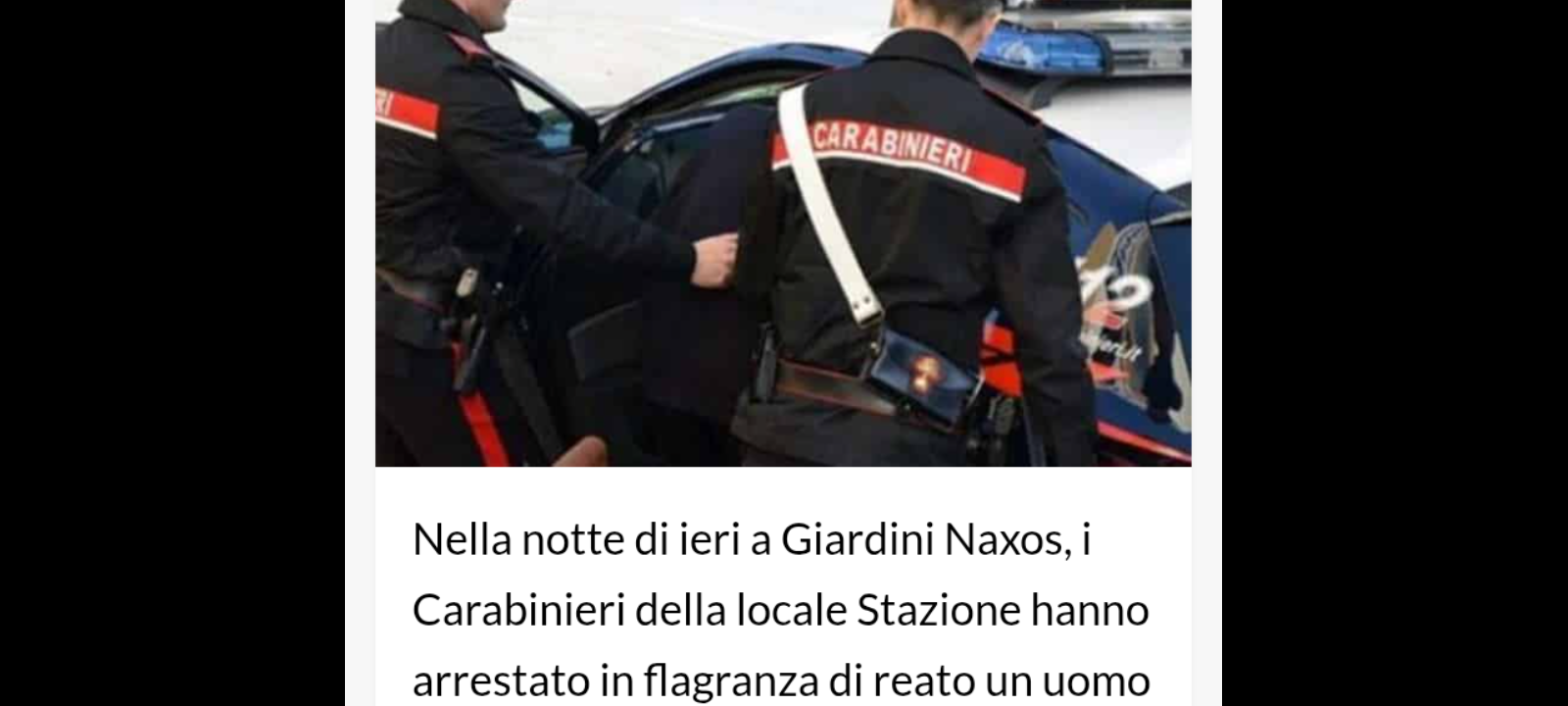 I Carabinieri della locale Stazione nella notte di ieri a Giardini Naxos, hanno arrestato in flagranza di reato un uomo di 39 anni, di nazionalità marocchina e già noto alle forze dell’ordine, con l’accusa di maltrattamenti in famiglia nei confronti della propria compagna.