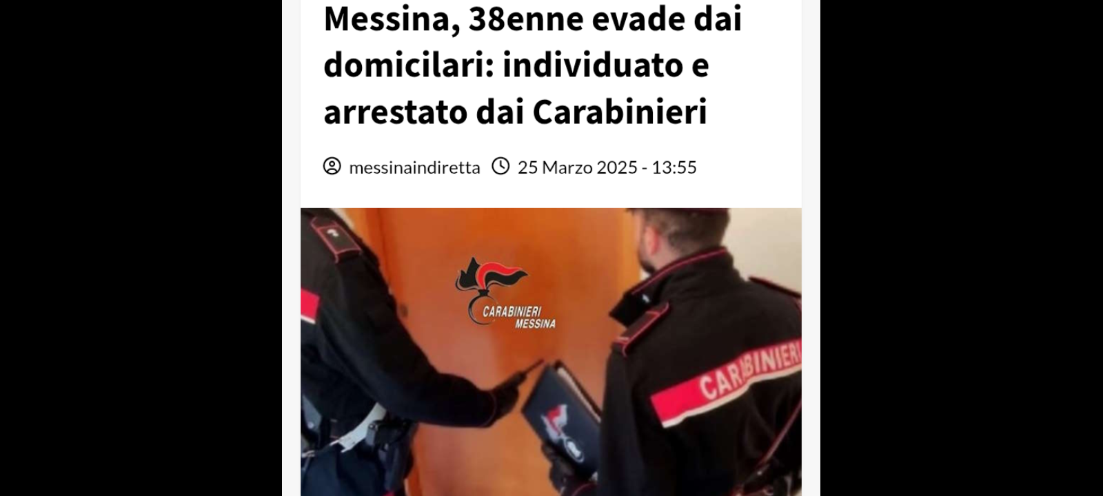 Durante un servizio di pattugliamento nel centro cittadino, finalizzato al controllo del territorio per la prevenzione e il contrasto dei reati, i militari dell’Arma lo hanno individuato e fermato mentre si aggirava a piedi nei pressi della stazione ferroviaria. Il 38enne, che nei giorni precedenti era stato arrestato per aver sottratto con violenza uno smartphone e del denaro a un 64enne messinese, è stato condotto in caserma e nuovamente arrestato.