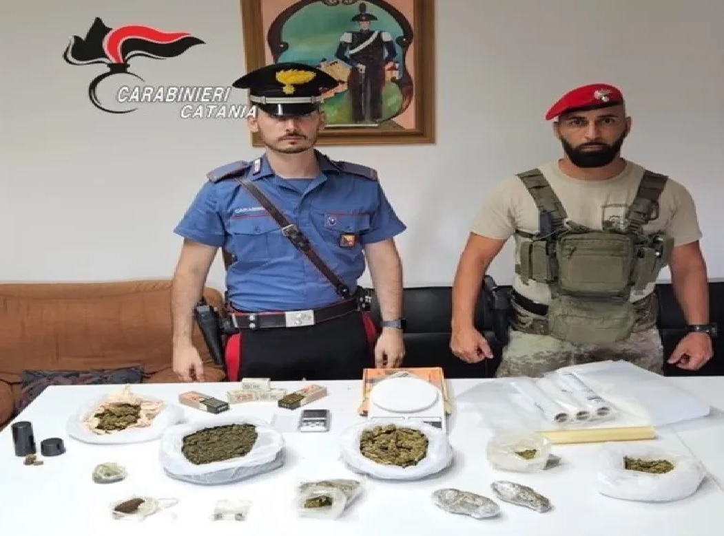 I carabinieri hanno così richiesto il supporto dei colleghi dello squadrone eliportato cacciatori di Sicilia, quindi hanno provveduto ad estendere le attività di perquisizione presso l’abitazione del 45enne ubicata in Grammichele dove sono stati rinvenuti due involucri contenenti marijuana per quasi 35 grammi complessivi oltre ad un ingente quantitativo di materiale per il frazionamento ed il confezionamento delle singole dosi di droga.