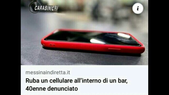 A seguito di una segnalazione di un cittadino che denunciava di essere stato derubato del proprio telefono cellulare, mentre si trovava all’interno di un bar in Savoca, i militari dell’Arma si sono recati immediatamente sul luogo e, dopo aver visionato le immagini prodotte dal sistema di videosorveglianza installato nell’esercizio pubblico, hanno individuato un uomo mentre s’impossessava di un telefono cellulare lasciato temporaneamente incustodito dal proprietario.