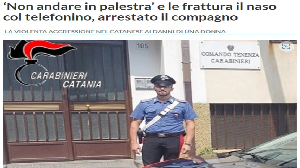 Non voleva che andasse in palestra e con uno dei suoi soliti scatti d’ira l’aveva colpita con estrema violenza con il telefonino, tanto da causare una frattura al naso. Finisce in manette per maltrattamenti un uomo di 57 anni della provincia Catanese. La vittima, la compagna di 38 anni, non era la prima volta che veniva aggredita con questa violenza. Questa volta ha però deciso di raccontare tutto ai carabinieri chiedendo il loro aiuto. Il pestaggio l’ha subito davanti agli occhi inorriditi e impauriti del figlio minorenne.