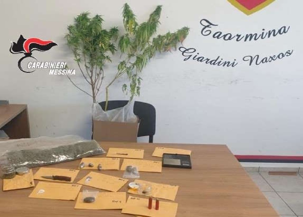 Alcuni residui di queste sostanze sono stati rinvenuti sul tavolo. Dopo una perquisizione estesa anche a un’altra residenza di proprietà del giovane di 29 anni, ubicata nel comune di Gaggi, i Carabinieri hanno recuperato una quantità significativa di stupefacenti, tra cui 236 grammi di marijuana, 37 grammi di hashish e 18 milligrammi di cocaina. Inoltre, sono stati trovati uno spinello di marijuana e un bilancino di precisione. Nel balcone dell’abitazione a Gaggi sono state scoperte anche tre piante di marijuana, ciascuna alta oltre un metro. Tutti questi elementi, uniti alla droga, hanno portato alla conclusione che, secondo le analisi tecniche di laboratorio eseguite dai Carabinieri del RIS di Messina, sarebbe stato possibile ottenere oltre 650 dosi di marijuana e hashish, oltre a una dose di cocaina, dalla sostanza sequestrata. Le piante di marijuana sono state anch’esse poste sotto sequestro. Il giovane di 29 anni è stato immediatamente arrestato e, dopo l’adempimento delle formalità di legge, è stato posto agli arresti domiciliari su disposizione dell’Autorità Giudiziaria, in attesa dell’udienza.