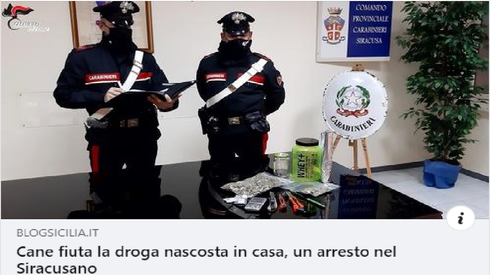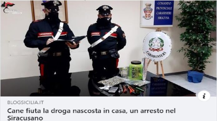 L’arresto a Canicattini dimostra quanto sia diffuso il consumo ed il commercio di droga nel Comune montano del Siracusano.