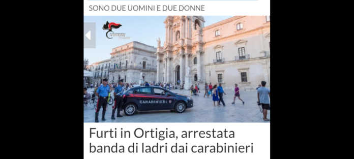 I carabinieri di Ortigia hanno arrestato due uomini e due donne, tutti siracusani con precedenti penali, poco dopo aver compiuto un furto in un ristorante in piazzetta San Rocco, in Ortigia, il centro storico di Siracusa.