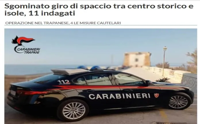 I carabinieri smantellano un fiorente giro di spaccio di stupefacenti nel Trapanese: undici in tutto gli indagati… il quartier generale nel centro storico di Trapani e arrivava sino alle isole Egadi… lo stupefacente approdava nelle isole utilizzando come paravento il trasporto ambulante di frutta e verdura.