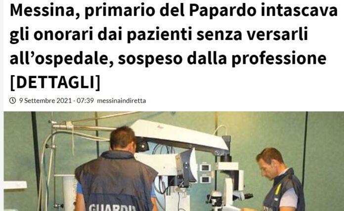 I Finanzieri del Comando Provinciale di Messina, nell’ambito di un’indagine coordinata dalla Procura della Repubblica di Messina, hanno portato a compimento una complessa investigazione nel settore sanitario, finalizzata a verificare il rispetto della disciplina dell’esercizio dell’Attività Libero Professionale Intramuraria (c.d. “ALPI”) da parte di un noto professionista cittadino.