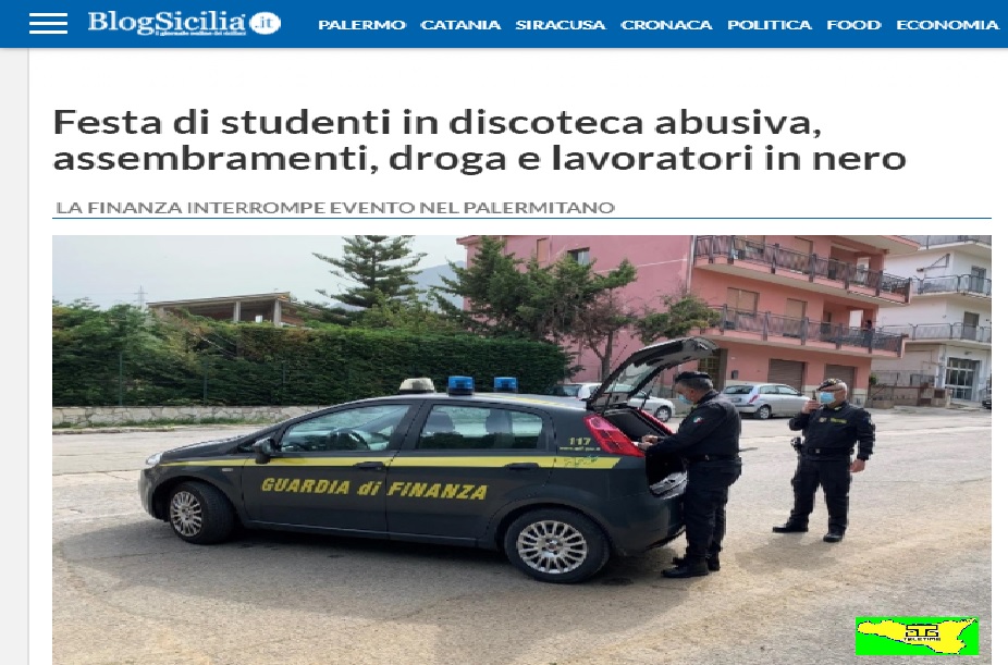 I finanzieri del comando provinciale di Palermo durante alcuni servizi di verifica, hanno scoperto nelle scorse ore una discoteca abusiva con lavoratori in nero, droga e assembramenti. I militari…, hanno multato un locale a Montelepre per aver organizzato una festa studentesca di un istituto scolastico senza il rispetto delle norme anti covid19. Nel corso dei controlli è emerso che il titolare non aveva la documentazione amministrativa per svolgere l’attività di discoteca e nel locale sono stati trovati 279 ragazzi.